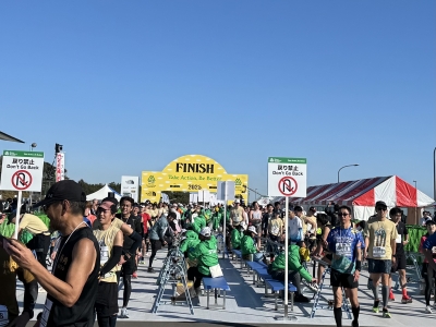 海沿いに人、人、人でした。海を見ながら走れるなんて埼玉出身の自分には至福の時間でした。